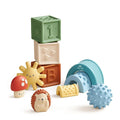This 10-piece play set features squishy-soft blocks and textured characters to stimulate the senses and spark creative storytelling.