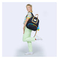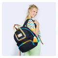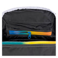 The ultimate go-to style. Mid-size backpack with a large wide-open zip pocket with rainbow airbrushed details and a water bottle pocket on both sides. Webbing tote handles featuring easy grab front and back strap with matching logo snap. Inside zipper pocket and back suitcase handle sleeve for easy travel. Adjustable padded back straps with no fail construction. Rainbow airbrush zip main compartment with paracord pulls. Inside padded sleeve fits up to 15" laptop. Rubber logo label with airbrush detail. Rainbow airbrushed mountain plush keychain included!