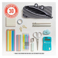Use this pencil case to hold: pens, pencils, glue sticks, scissors and craft supplies, tech gear, cords and accessories, jewelry, makeup, change and more.