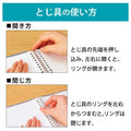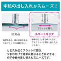 Kokuyo's Campus Smart Ring binder notebook is ultra-slim and light. As with binders, you can re-arrange pages by opening the rings, but this notebook is as slim as a regular notebook. Great for meetings and classes, the notebook has flexible covers that fold back to occupy less desk space. This notebook contains a contents page and 10 sheets of B5 Kokuyo Campus Sarasara loose leaf paper with 36 lines of dotted 6 mm rule per page. The maximum capacity is 25 sheets.