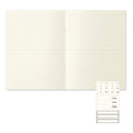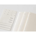 Each of the three notebooks has 48 pages (24 sheets) of A5 paper. You can even fold the pages all the way around and hold it in one hand, allowing you to write while standing. A sticker sheet with numbers and fill-in labels is included, so you can organize your MD Notebook Light collection.
