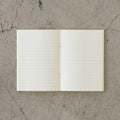 The soft cream paper is gentle on the eyes and looks especially nice with black or blue-black ink. Each notebook lays completely flat thanks to traditional Japanese binding techniques and the exposed spine gives it a clean, utilitarian look.