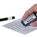 Soft plastic eraser removes marks cleanly with little pressure and no paper damage. Great for school or art. The eraser’s protective paper sleeve features rounded corners to prevent damage to the eraser during use. Black erasers hides graphite residue and always looks neat and clean.