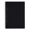This 6mm dotted line notebook has a title section at the top of each page, and index markings along the left or right hand side of the page with a thin space along the edge of the paper for you to color in so that you can color code sections of the notebook. After you are done writing an entry, write in the date and title on the side index space and color it in so that you will be able to find that entry easily when you are flipping through the book. The dotted line rule reads first as regular line rule, interspersed with 5mm dots for use in making precision graphs, charts, handwriting, and so on. Its wipe-clean navy blue plastic cover provides support without being overly stiff, making it comfortable to use in any work environment.