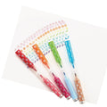 - Set of 18 markers with a brush tip on one end and a stamp on the other