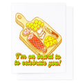 Risograph is what you would get if a screen print and a mimeograph had a baby; images are printed one color at a time and colors are layered on top of each other making each card unique. The vivid colors and playful imagery are sure to brighten anyone's day!