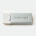 The eraser is made of a special soft material that erases the dark lines of our graphite cleanly and easily. The holder is made of durable aluminum that lets you get a solid grip while erasing. It also includes a jumbo-sized version of the iconic Blackwing clip, so you can extend the eraser as you use it.- Available in Black, Grey & White