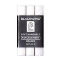 Each eraser is made of a specialized soft material that erases the dark lines of Blackwing graphite cleanly and easily. Use them with the durable aluminum holder that lets you get a solid grip while erasing. The jumbo-sized Blackwing clip also lets you extend the eraser as you use it.- Pack of 3 erasers