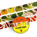 Bring a rainbow of veggies to your pages with this ultra-colorful washi tape, featuring a vibrant gradient of produce from tomatoes to leeks to beets. Printed on semi-transparent traditional rice paper — perfect for journaling, crafting, gifting and more!