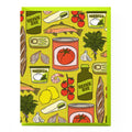 The perfect everyday notecard for food fans, featuring a deliciously detailed pattern of baguettes, olive oil, sardines, burrata, rainbow trout, and other tasty finds.
