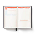Inspired by vintage library books, (You remember what those are, right?) this small planner features a black clothbound cover with embossed artwork and 208 individually designed pages. Measuring 4.75” wide by 7.5” tall (and 0.75” thick, if you’re curious), this undated planner is super portable. Toss it in a backpack, purse, or briefcase and always be prepared for when the strike of inspiration hits and you’re ready to get organized.