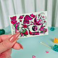 These strawberry flavored rolling papers feature flash made specially by Courtney O'shea at Nashville tattoo shop Black 13. The pack has a magnet that keeps the pack shut for safekeeping, and can open up to also function as a handy rolling tray! An elastic is included to hold the sides up so that none of your flower will fall out <3