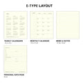- Content: Calendar, Monthly Schedule, Extra Lined Pages, Personal Data