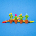 After seeing the detail in these tiny cactuses, you’ll have to agree we’ve got an eye for cacti. Despite being between 1-5/16" (3.3 cm) and 1-1/2" (3.8 cm) tall, these soft vinyl cactus with colorful flowers have tons of detail. You can even see the stones in their planter.