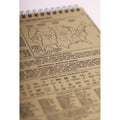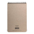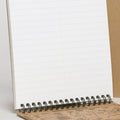The Steno is 6" by 9" with a black “Double-O Wiring” spiral at the top so it lies flat, open or closed. Inside you’ll find 80 pages of 70# “Bright White” paper Gregg-Ruled with a fine, soy-based application of “Double Knee Duck Canvas” light brown ink. The covers are 60 pt. “Super Duty Chipboard,” with a screen-printed 1-color application of “Dictation Smudge” black ink.