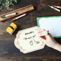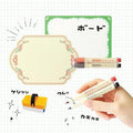 This set features marker that turns in your hand and allows you to quickly change colors, a nostalgic eraser and 2 types of paper whiteboards. Cute and convenient size with a retro design.