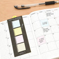 Designed to imitate tiny pieces of filing paper, complete with a ruled or squared page layout and cuts down the left hand side to suggest ring binder holes. Particularly ideal for using with calendars and diaries to make your reminders really stand out.