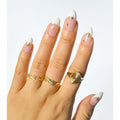 These tiny stickers were made to be easy to remove from their sheets and press right onto your nails. They can be applied to gelled, polished, or natural nails, just make sure that whatever surface you're putting them on is dry.