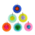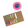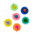 These mini fans are hand-dyed to give them their rich color and look great on dinings tables, Christmas trees, mantles and more. They come with a hole to easily attach string or springs to hang them from ceilings, walls or door frames. They come in a pack of six, each with two different tones; Lavender and Bright Yellow, Bright Blue and Bright Green, Bright Orange and Bright Pink, Bright Yellow and Lime Sherbet, Bright Orange and Cobalt and Bright Pink and Bright Blue.