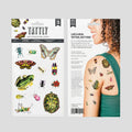 Colorful beetles, a turtle, a frog, and join together on this sheet for plenty of fun! These vibrant critters from artist J6R6 have places to go, but they will happily crawl across your skin for a few days.