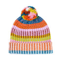Chunky knit beanie knit with intersecting plaited stripes. Topped with a contrasting, fluffy 3.5" pompom. Super soft and warm for cold days.