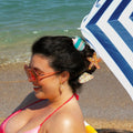 Oh, what a beautiful tropical fish! With its black-speckled fins, wry smile and pretty iridescent color reminding us of the rainbow fish of our childhood. A colorful hair claw who can't wait to join a crossword puzzle by the water.