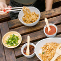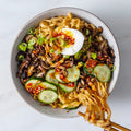 Noodles: Wheat Flour, Water, Salt. Sauce Packet: Soy Sauce (Water, Sugar, Salt, Soybean, Wheat, Caramel Color, Yeast Extract,Malic Acid), Chili Oil (Soy Oil, Paprika, Capsicum Extract), White Sesame Oil (Soy Oil, Sesame Oil).Contains: Wheat, Soy, Sesame