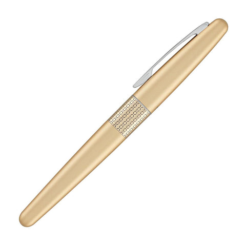 With over a century of craftsmanship behind it, the Pilot MR Metropolitan Collection blends classic design with modern elegance. This gold-colored metal bodied pen has a glossy gold-colored accent band with a zig-zag pattern, silver trim, and a steel nib and offers a smooth writing experience and a refined aesthetic.