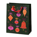 Smile, it’s the holidays! Our cute ornaments are smiling at you from where they hang on the Christmas tree. Design in pink, red, and peach on green. This bag can hold books, candles, or anything else you need to gift!