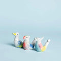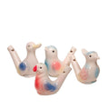 Add water to these old fashion style ceramic whistles and blow to hear a cheerful chirping. These water whistles are creatively designed in the shape of 4 different styles of birds, and painted beautifully creating a simple amusement that is fun for all ages. They are just small enough to be portable, but large enough to make it's little tweet be heard beautifully.