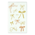 A monthly diary with a compact and stylish size. The cover features silk-screened metallic gold bows in different styles, and the vinyl outer cover features a slim pen holder. A ribbon bookmark helps you keep your place.