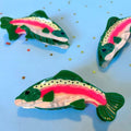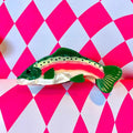 It's the rainbow trout hair claw here to bring you some Bass Pro Shop Chic, complete with black rhinestone spots.