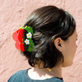 • This charming red strawberry and flower hair claw is made of cellulose acetate––a plant-based alternative to plastic!