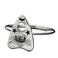 If you are fascinated with the occult, then you will delight in this sterling silver Ouija planchette ring with an all-seeing eye. It features details you might find on the real thing, like tiny stars & moon, the hole for selecting letters, and an all-seeing eye.