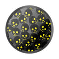 Haunt people year round with yellow-eyed skulls on a translucent black background.