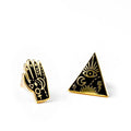 Presented in super cool glass vial packaging, these unique earrings blend a sense of gold glamour with a charming twist. The mismatched yet perfectly paired cloisonné petite studs are gilded in 22 karat gold and have hypoallergenic posts.