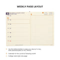 - Weekly pages resemble a legal pad, allowing entries for headings, dates, and times in red vertical rulings.