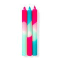 Set of three lovingly hand-dyed dinner candles in neon look. The colors remain the same, the pattern gradients vary with each candle and make them a special one-of-a-kind.
