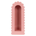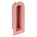 Add a playful pop of color and charm to your space with this Pink Scalloped Metal Wall Shelf. Featuring a graceful arched shape and scalloped edge detail, this piece brings a whimsical touch that perfectly complements cottagecore, eclectic, or Scandinavian interiors.