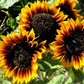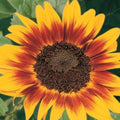 Very uniform variety. Dark-centered blooms are 4-5 inches across with petals that gradually fade from a dark red base to golden-yellow tips. Branching habit with long side stems, one of the best varieties for cut flowers.