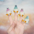 Finger Pigeons love to roost on the tips of your fingers. These 1-3/4" (4.4 cm) tall, soft vinyl feathery friends are there when you need them in an assortment of four different shades (chosen at random). You’ll want them for the pigeon fancier in your life. They even have tiny legs in case you want to tie a note to one.