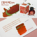 This ink starts as a vivid, juicy orange—bright and full of life—then slowly deepens as it dries, taking on the rich, earthy tone of ripened fall leaves. A subtle green or golden sheen emerges in the right lighting, adding a quiet shimmer that echoes sunlit treetops and mountain mist. Part of the Korea Special collection, Maltijae is a beautifully expressive ink that shifts and glows, just like the landscape it was inspired by.