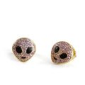 Far out alien stud earrings in lilac glitter trimmed with enamel & gold accents! Perfect for space babes!