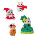 Happy Christmas Friends is a set with a Husky Girl and three babies dressed in festive holiday outfits, fun to play and cute to display.