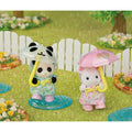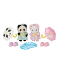 Nursery friends Marshmallow Mouse baby Albert and Pookie Panda baby Angela want to go outside to play - even though it's raining! They have their rainboots, umbrellas, and cloud-pattern raincoats and are excited to stomp in the included puddle over and over. This set sparks storytelling adventures for young learners.- This set comes with cute umbrellas, wellies and even a puddle—perfect for rainy day play. The umbrellas fit in the babies’ hands.