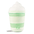 Pusheen's feeling green as a healthy, creamy matcha latte! This large plush captures the lovably lazy tabby as a green striped matcha-filled cup topped with a white swirl of soft tousled plush whipped foam. It also features Pusheen's signature smile, pointed ears, and striped tail.