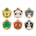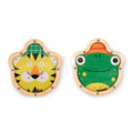 Can you roll all the balls into the holes? These fun assorted tilt puzzles will test your patience and motor skills. Double sided animal shaped game made from FSC wood.