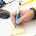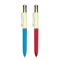Four bold ink color choices in one tastefully retro ballpoint pen. Press down the color lever of your choosing then lightly press the lever next to it to release