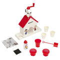 Turn regular ice cubes into cool and refreshing treats with this popular and iconic toy! Everyone will love making and eating these treats. Simply freeze your ice cubes in the custom Snoopy Sno-Cone Maker mold. Put the ice cube in the Snoopy Ice Shaver hopper and give it an easy turn to fill your cup with perfectly shaved fluffy ice. Top your shaved ice with the included syrup bottle and enjoy!