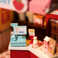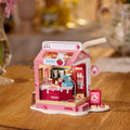 A delightful DIY miniature milk shop, cleverly designed to resemble a classic milk carton! The shop's structure mimics the familiar carton shape, complete with a playful straw sticking out from the top, bringing a touch of nostalgia to the scene. Inside, you'll find charming details like shelves lined with milk bottles, a small counter, and playful dairy-themed décor. The carton-shaped structure adds a unique twist, turning the shop itself into a whimsical piece of packaging.